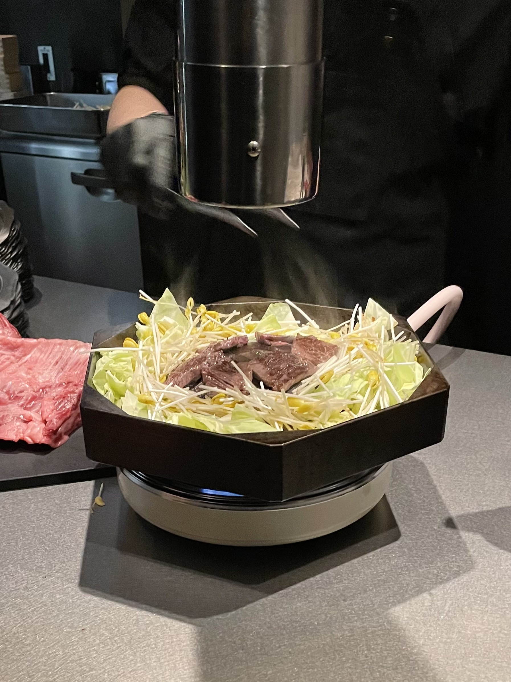 極厚の特注ジンギスカン鍋の存在感。